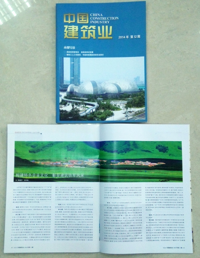 《中國建筑業(yè)》雜志在2014年第12期中報道了中太建設(shè)集團(tuán)構(gòu)建特色企業(yè)文化、彰顯建筑鐵軍風(fēng)采