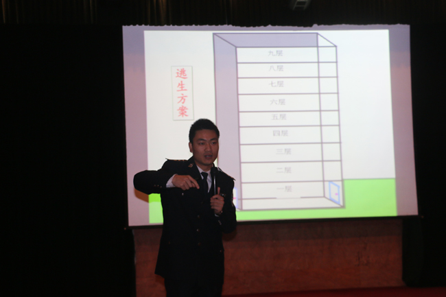 程俊磊老師從事消防宣傳及教育工作多年,為社會多家機關(guān)、企事業(yè)單位進行消防安全教育,曾對北京武警總隊、河北省財政廳、廊坊市安監(jiān)局、廊坊市人民醫(yī)院等社會各界進行過消防基礎知識宣傳,并得到廣泛好評。培訓中,他以鮮活的案例入手,分析了引起火災的原因及錯誤的防火意識,講解了如何正確使用滅火設備以及正確逃生措施等知識,最后,對國內(nèi)到國外的先進安全器材進行了推廣和宣傳,深入淺出、細膩地、系統(tǒng)地闡述了消防安全的重要性。其中,如何火場逃生常識以及正確使用防毒面具等專業(yè)消防技能,使得參訓人員印象深刻、受益匪淺。培訓過程中,程俊磊老師還與參訓人員進行了現(xiàn)場互動、交流。