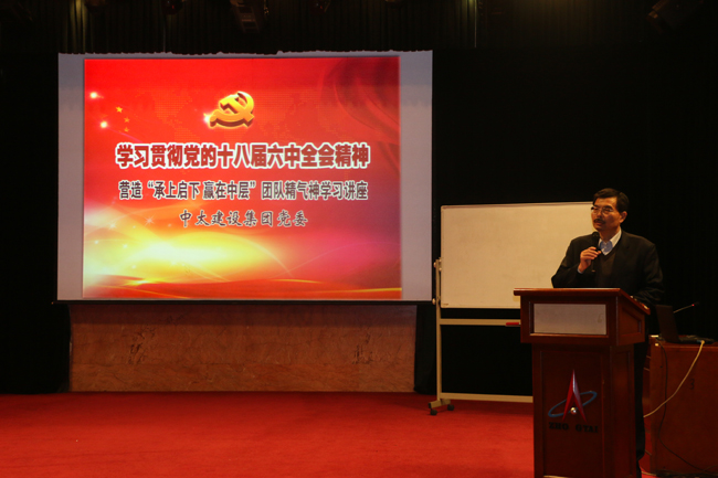 為學習宣傳貫徹黨的十八屆六中全會精神,結合集團公司當前的實際情況,營造團結向上、執行有力、務實高效的思想工作氛圍,集團公司黨委于2016年11月10日下午在中太大廈二樓報告廳舉辦了“學習貫徹黨的十八屆六中全會精神,營造承上啟下贏在中層團隊精氣神”的學習講座。