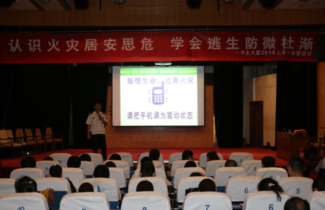 5月25日上午,中太大廈2018年度上半年消防培訓在二樓報告廳舉行,邀請中國安全健康教育網河北站高級宣教員程軍老師,為大家帶來一場精彩的消防知識講座。