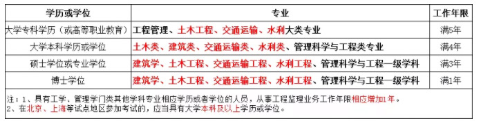 具有工程技術或工程經濟專業大專以上(含大專)學歷,并符合下列條件之一者,可申請參加監理工程師執業資格考試。