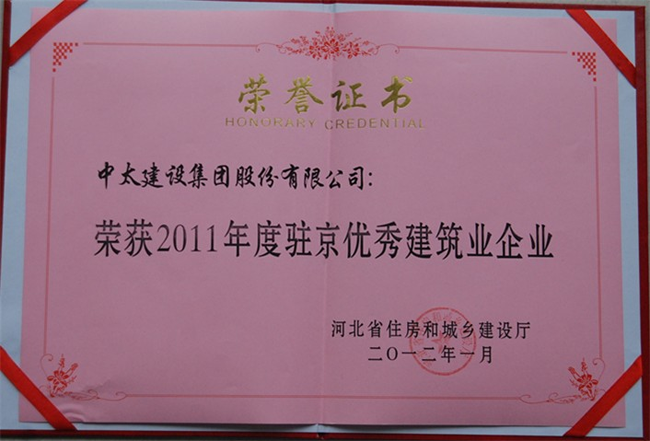 集團公司榮獲“2011年度駐京優秀建筑業企業”榮譽