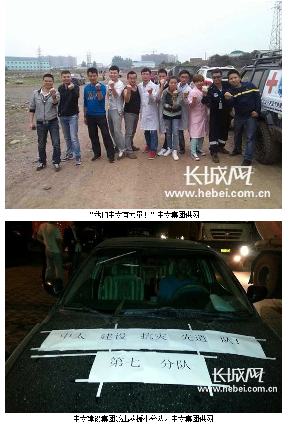 長城網(wǎng)廊坊4月23日電(劉振山 孫彥池)記者從位于河北廊坊的中太建設(shè)集團(tuán)總部獲悉,4月20日四川雅安發(fā)生7.0級地震后,中太建設(shè)集團(tuán)董事局主席李文健等集團(tuán)領(lǐng)導(dǎo)高度重視,立即指示相關(guān)部門了解和掌握情況,并迅速從該集團(tuán)四川辦事處抽調(diào)7名得力人員組成救援小分隊(duì)趕赴重災(zāi)區(qū)蘆山縣開展救援工作。
