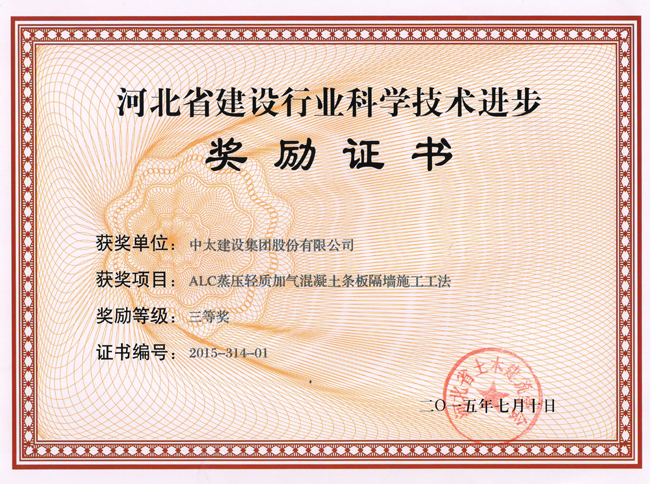 2015年河北省建設(shè)行業(yè)科學(xué)技術(shù)進(jìn)步獎(jiǎng)勵(lì)證書匯總
