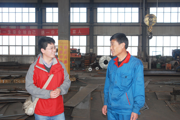 一支部隊勇往直前,靠的是指揮官的韜略在胸和身先士卒;一個班組拼搏進取,靠的是班組長的傾心管理和身體力行。作為一名黨員班長,尹賀林時刻履行自己的承諾,帶領班組成員攻堅克難,為公司安全生產把好“裁剪”關。他技術全面,工作要求高,無論下料班的哪個工序,他都操作嫻熟,哪兒出現故障,他就出現在那兒。車間里,任何一個班組遇到解決不了的難題,都會找來他商量。每次他都會熱心地和大家一起想辦法去解決。去年,某工程的構件加工過程中,由于施工圖紙的變更而導致部分連接板半成品無法使用,如果作為廢品處理,將給公司帶來巨大的損失。尹賀林利用業余時間,鉆研革新加工工藝,將這批連接板進行重新加工,使得這批連接板可以重新使用于構件的其他部分,直接為公司挽回巨額損失。而且,在實際的生產中,尹賀林每天都利用業余時間刻苦研究各項工藝,解決了多個生產過程中碰到的難題。現有的多數控切割技術的電腦程序無法完全滿足實際需要,在加工過程中會遇到各種無法完成的技術難題而使工作暫停。尹賀經過刻苦研究,反復試驗,革新電腦程序,使得異形板加工、切割小車行程的限制等多個難題得以解決,為公司增產增效。